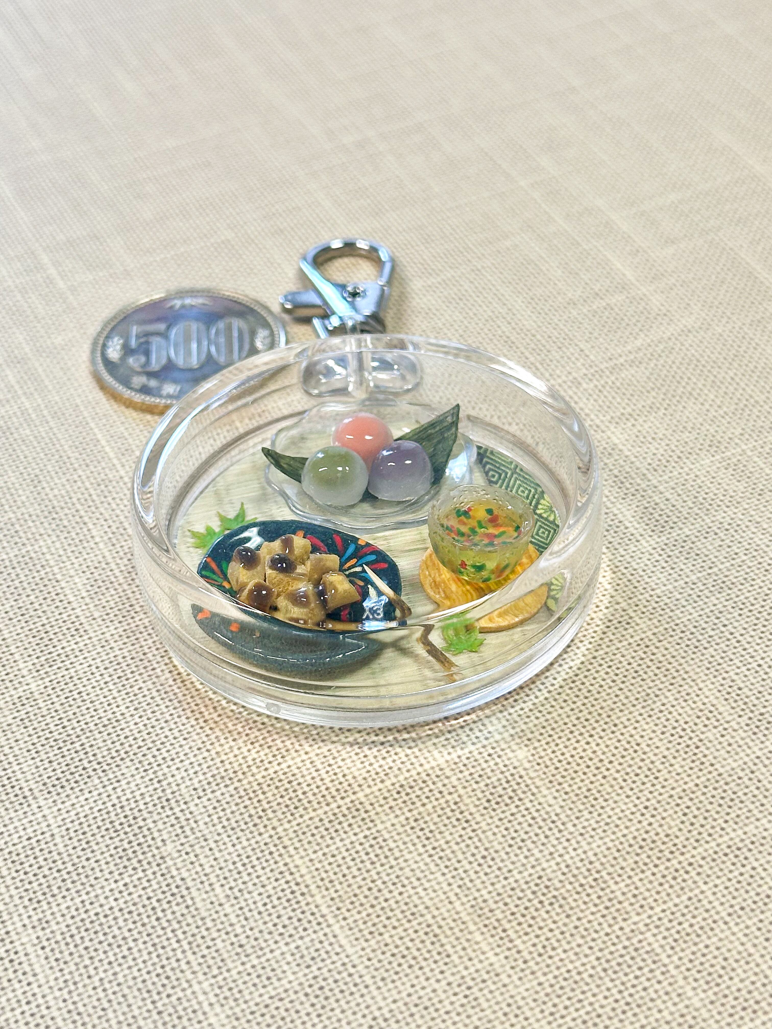 涼やかなミニチュア和菓子達を、小さなプラケースの世界に閉じ込めました。