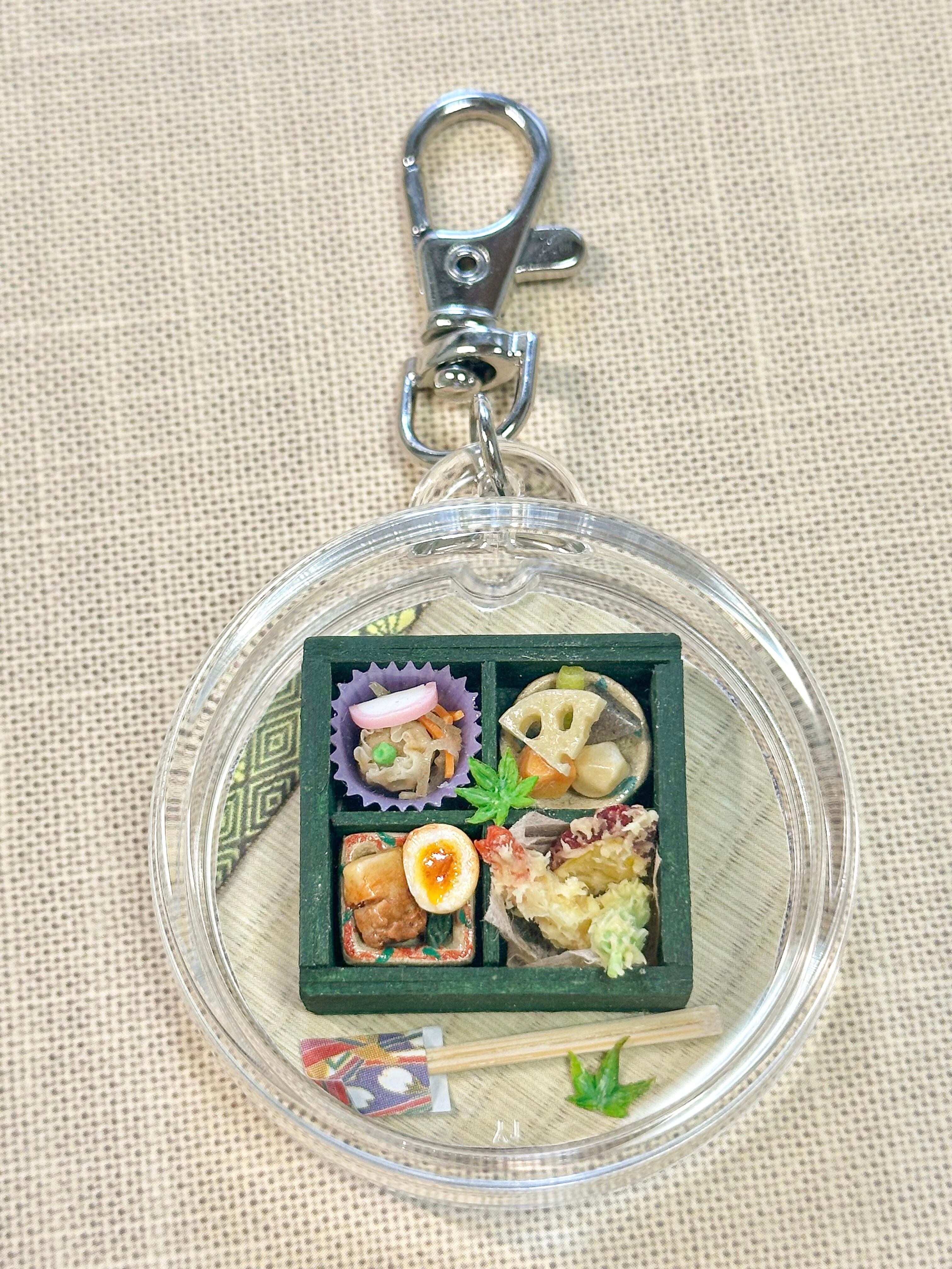 眺めているだけでお腹がすいてくるリアルなミニチュア和食弁当を、カバンにつけてどこへでも持ち歩いていただけます。