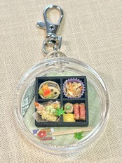 眺めているだけでお腹がすいてくるリアルなミニチュア和食弁当を、カバンにつけてどこへでも持ち歩いていただけます。