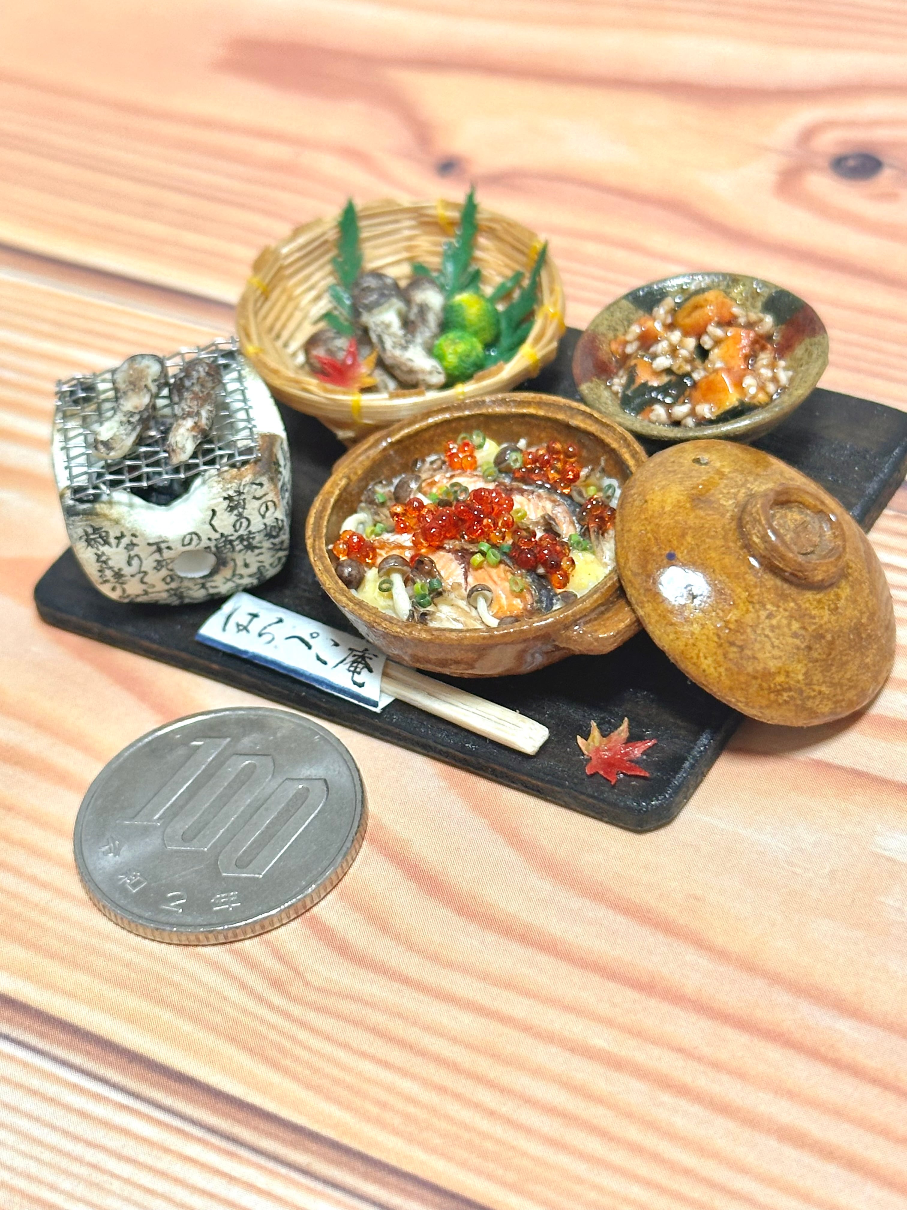 秋の旬をこれでもかと詰め込み、贅を尽くしたミニチュア和食セットです。