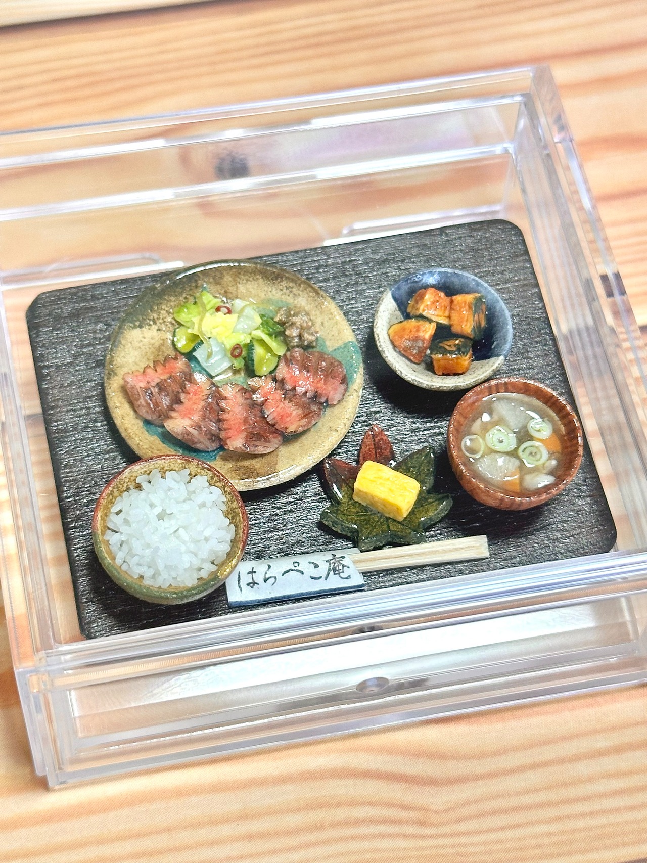見どころはやっぱりあれですね、牛タンの断面。ちゃんと切れ込みが入ってギザギザになっててね、鮮やかなピンク色が何とも食欲をそそります。