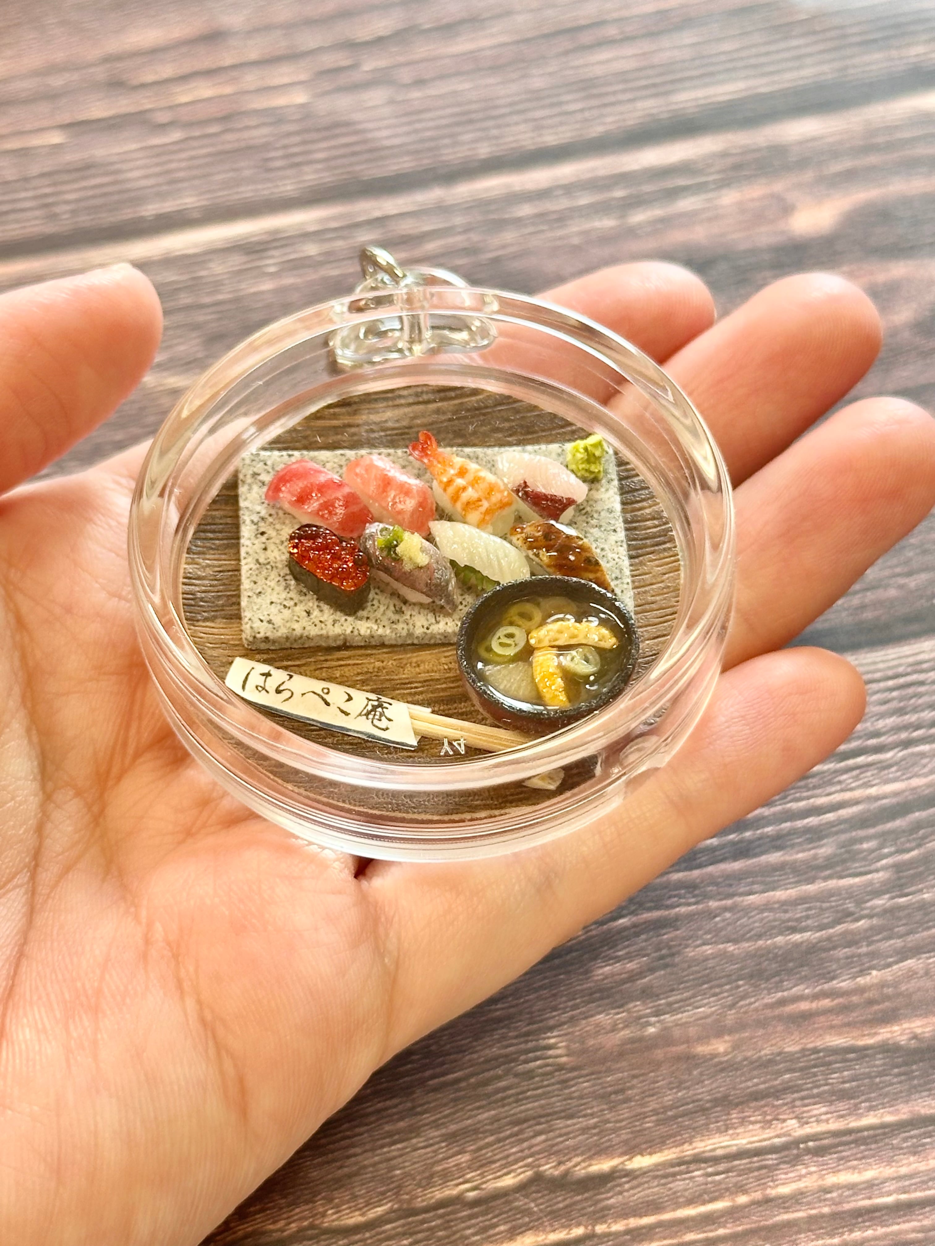 『はらぺこ庵』店主が早朝に眠い目をこすりながら魚河岸で仕入れてきた、新鮮なネタの盛り合わせキーホルダー。